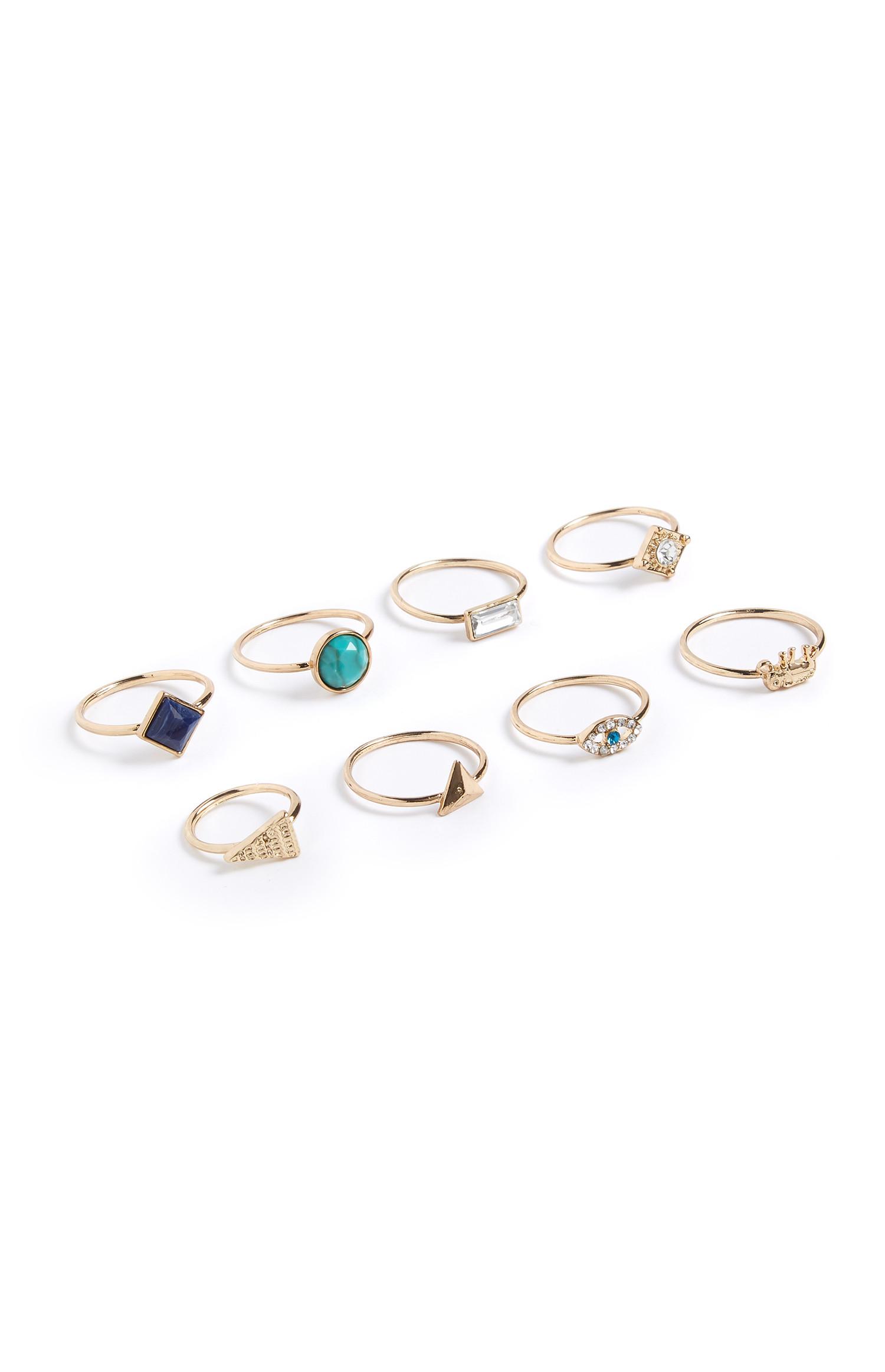 Lot De 8 Bagues Pour Femme En Or Plaque