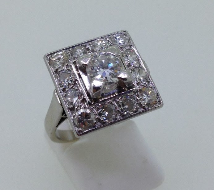 Bague Art Deco Diamants Platine Or Blanc