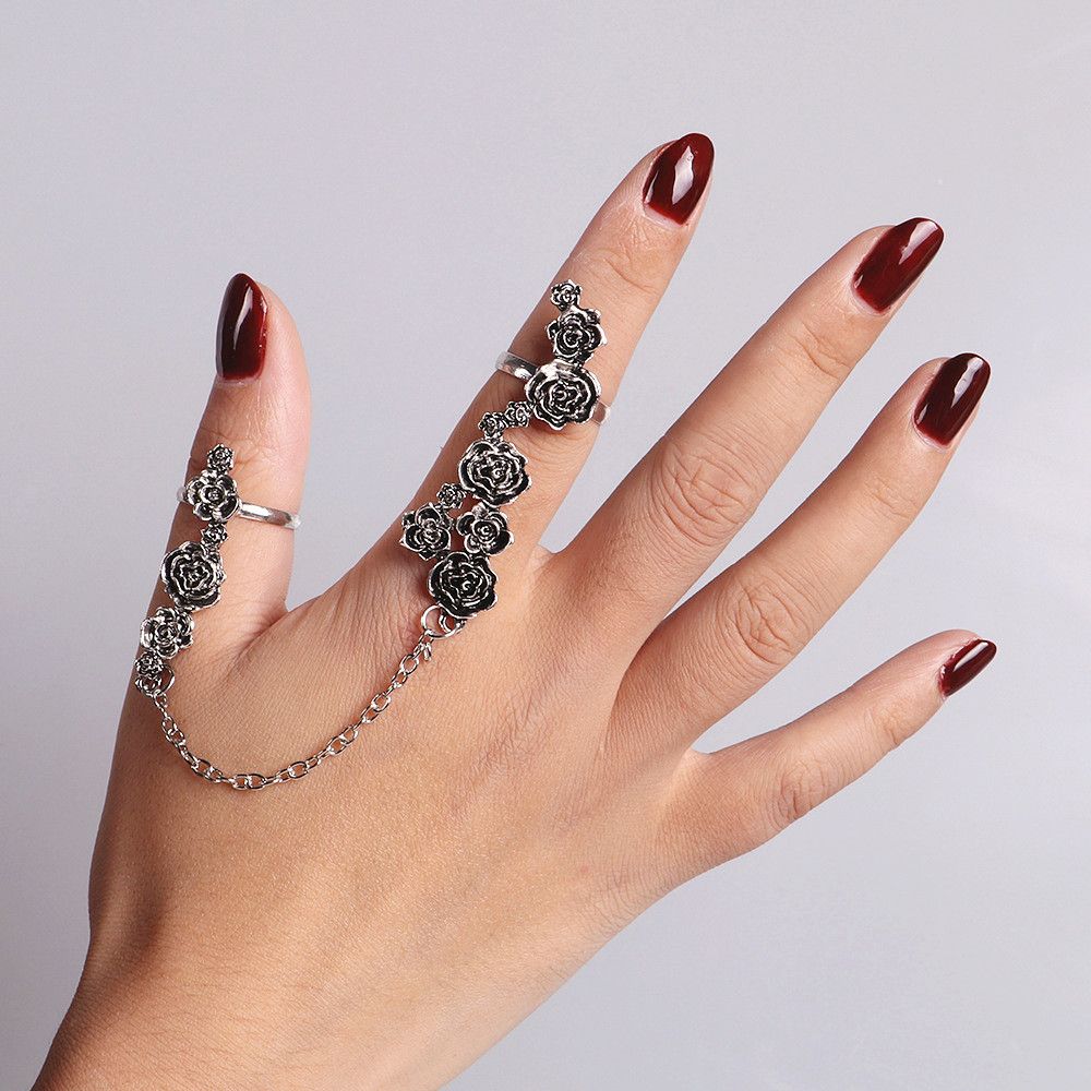 Acheter Reglable Beaute Exquise En Silence Anneaux Siamois Vintage Gun Noir Plaque Alliage Etain Rose Fleurs Punk Femmes Doigt Bijoux Cadeau